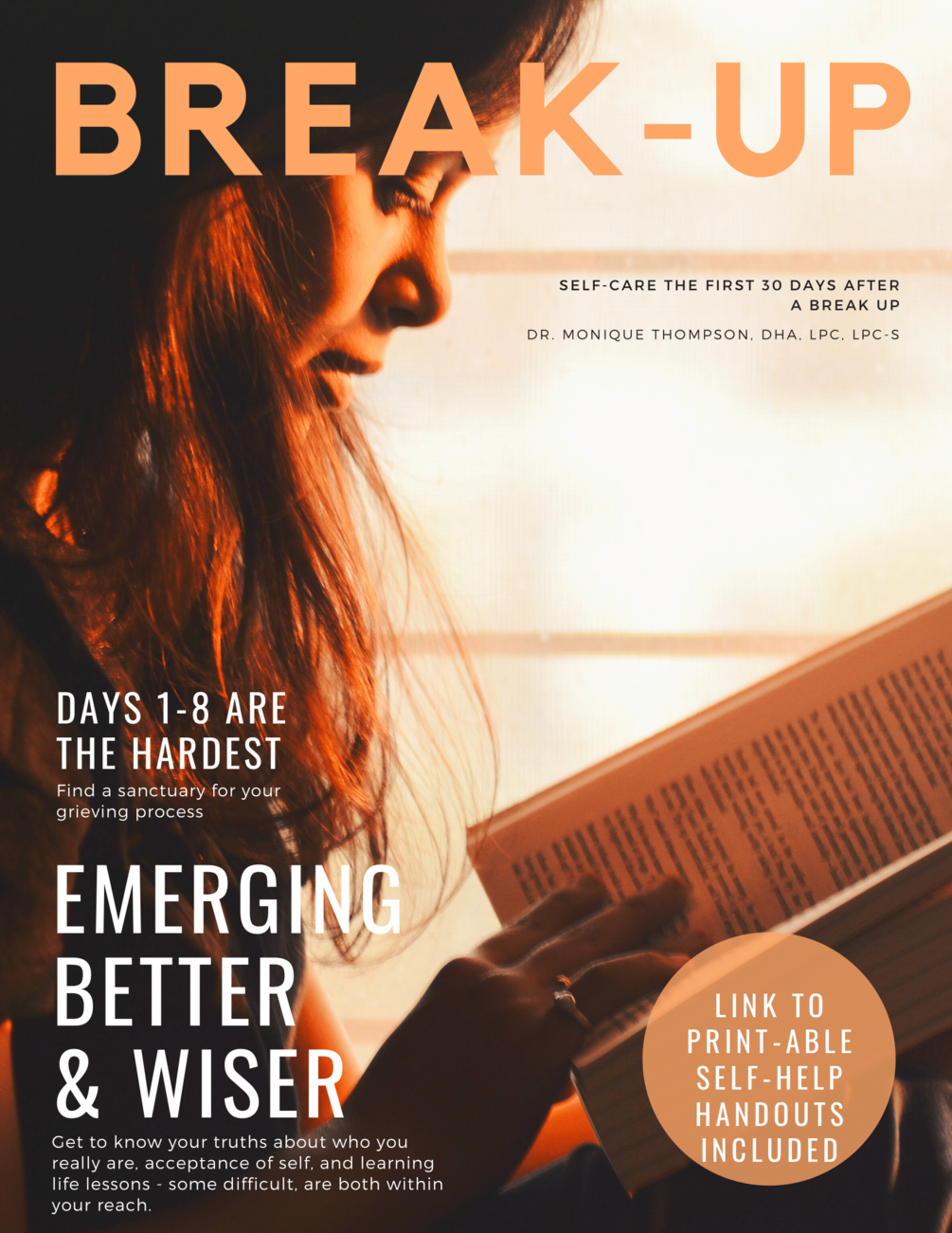 Ways to cope the first 30 days after a difficult break-up. Includes links to print-able self help handouts